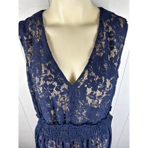 Gabby Skye Navy Blue Tiered Midi Dress with Lace Overlay in Size 14. NWT. Purchased at Nordstrom Rack. Perfect for Weddings, Cocktail Party or Night out.