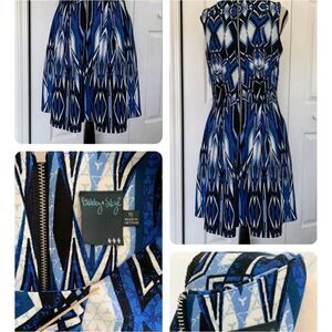 Gabby Skye Dress Blue White Fit & Flare Pockets Zipper Geometric Women’s Size 10