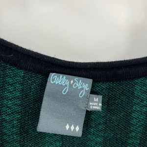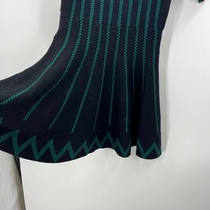 Gabby Style Black Dark Green Striped Short Sleeve Sweater Dress Pleated Medium