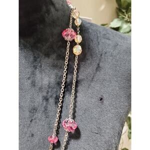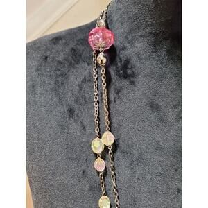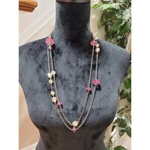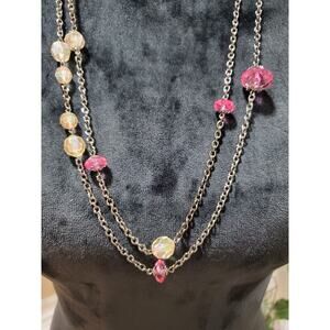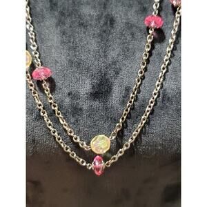 Gabi Women's Double Layer Multiple Bead Silver Chain Fashion Necklace.