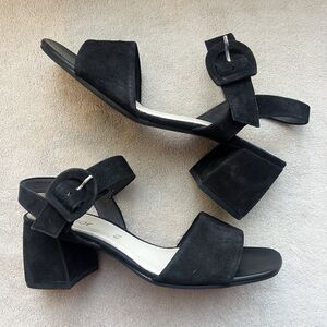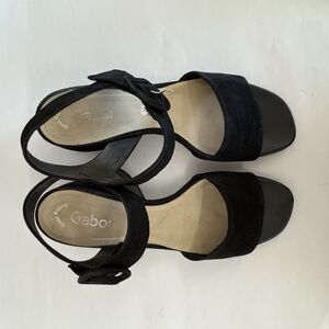 Gabor Black Nubuck Leather Low Heel Sandals Women UK 6.5 US 9 Wide Strap