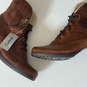 Gabor Cosmic Ankle Leather Boots With Wool Cuff. Can Be Worn Up Or Down. Lace Up With Speed Lacing Eyelets. Warm Lining.