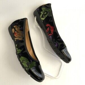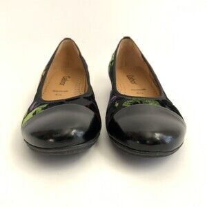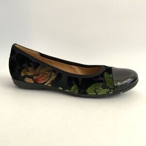 Gabor Hovercraft Flats Women Size 4.5 US 7M Black Floral Velvet Cap-toe