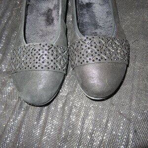 Size 8.5 Black Suede with a metallic shimmer added to it/paid $165