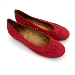 Gabor Hovercraft Red Suede Ballet Shoes Slip-On Flats Size US 4/UK 4/EU 37