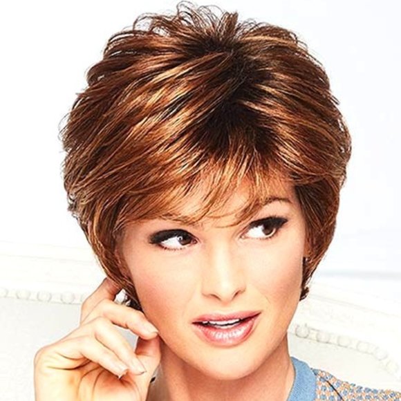 Experience the elegance of Gabor's red wig, featuring a short, layered design with feathered texturing for added dimension. The vibrant red color enhances the style's dynamic look, while the volume at the crown and face-framing layers offer a chic and versatile appearance.