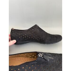 Gabor Suede Perforated Flats Sneakers US Size 10 (UK-7.5) Black Minimalistic