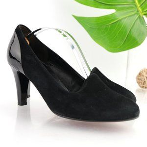 Gabor Women's Vision Pump Size 7.5 Mid Heel Black Suede Patent Slip On Shoe
