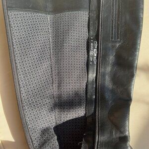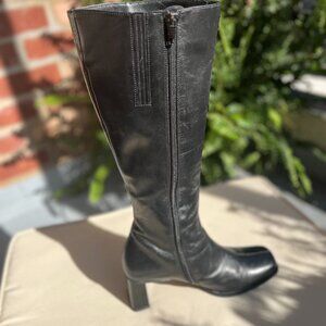 Very comfortable knee high boots. Calf is a slim fit, with a circumference of 14.5 inches with a bit of added elastic at the top and a thin lining.