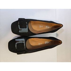 Gabor comfort black nubuck ballet flat with a silver buckle. Size 6.5.