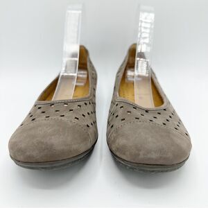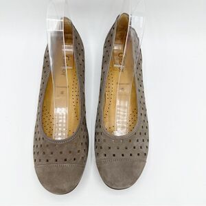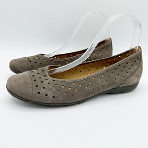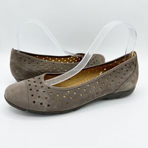 Gabor Hovercraft Ruffle Nubuck Taupe Brown Perforated Comfort Ballet Flat Sz 6