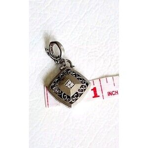 Gabriel and Co. Sterling 925 Silver/ Steel Dimond Scroll Filigree Square Pendant