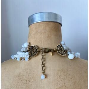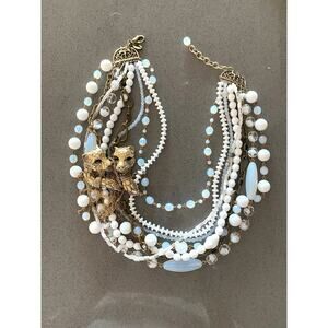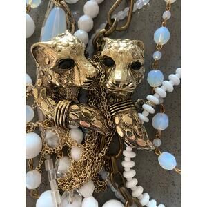 Gabriele Frantzen White Multi-Strand Statement Necklace with Gold-Tone Tigers