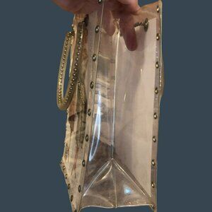 Gabriell Ichak Clear Acrylic Handbag With Vintage Fashion Print & Metal Rivets