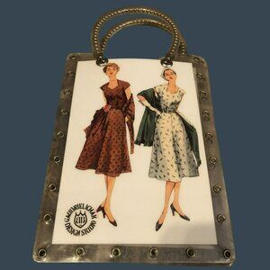 Stylish and durable acrylic handbag featuring a unique vintage fashion print. Ideal for carrying essentials with a touch of retro elegance.