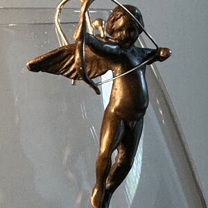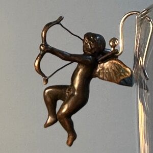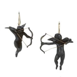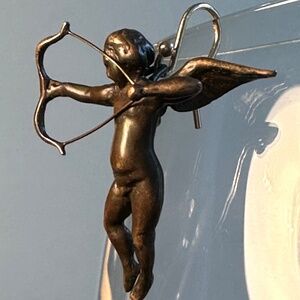 These lovely flying archers can either be angels or cupids. Both have their bows drawn, ready to shoot their respective arrows. Arrows of love? Arrows of life everlasting? Only you know. One has wings up, the other wings down. They are created from bronze and are beautifully patinated. The ear wires are 14K gold so they are hypoallergenic. They measure approximately 1 1/8" x 1" when hanging, and measure 1 1/2" from the top of the ear wire to the bottom of the earring. Each earring weighs approximately 5.5 grams.