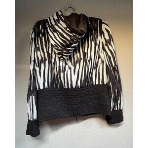 Gabriella Molinari Womens Sz 8 Black & Whete Crinkle Zip Up Hoodie Smocked Trim