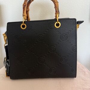 Gorgeous Gabriella Puccini Firenze handbag featuring a structured silhouette, embossed logo pattern, and signature bamboo-style top handles. (with Dustbag)