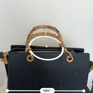 Gabriella Puccini Black Embossed Leather Bamboo Handle Bag with Dustbag– 10.5”