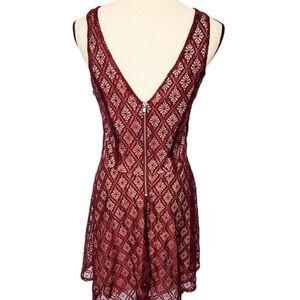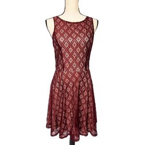 Nude lining with wine colored crochet overlay