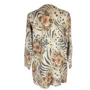 Gabriella T Italy Merino Wool Blend Cardigan Sweater 1X Floral Animal Floral Print 3/4 Sleeve
