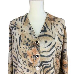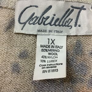Gabriella T Italy Merino Wool Blend Cardigan Sweater 1X Floral Animal 3/4 Sleeve