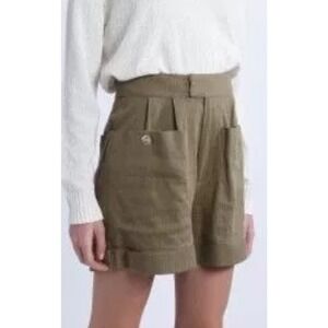 Gabrielle Cargo Shorts Women’s Sz S 100% Linen Tan High Waist Pockets NWT