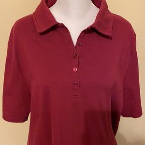 Women’s size 1X Gabrielle Rohde-Royce polo style shirt, dark burgundy red shade, light to mid weight cotton/polyester blend