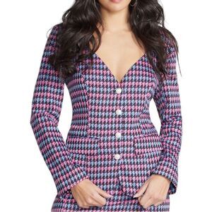 Gabrielle Union Fitted Sweetheart Neck Blazer in Multi Fandango Pink in the Size Large