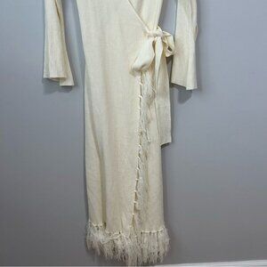 Gabrielle Union Off White Cream Sweater Wrap V-Neck Midi Dress Women’s Small