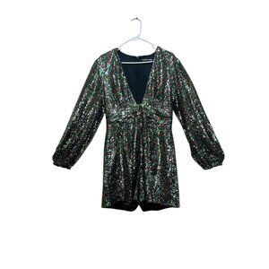 Gabrielle Union Rainbow Sequins Romper Dress Women Medium Ballon Sleeve New Year