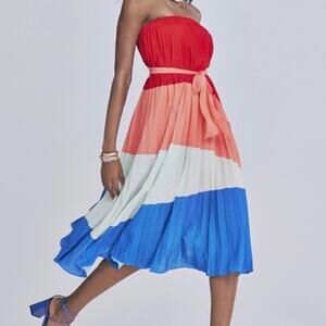 Gabrielle Union WOMEN'S Strapless Belted Midi Dress blue/white/coral MEDIUM