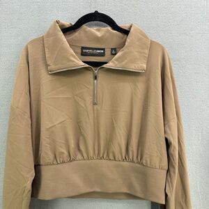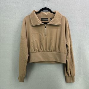 Gabrielle Union Womens Camel Collar Zippered Crop Athletic Pullover Size Large