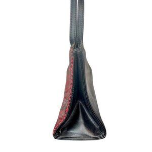 This is an authentic Gacel Faux Snake Skin Print Clutch Purse Bag in Red/Black. Vintage. Red and black faux snakeskin. Black shoulder straps. Magnetic snap closure