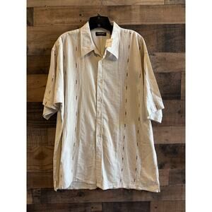 Gachu by KBB, Tan/ Natural Linen Button Up, Short Sleeve, Men Size XL
