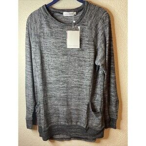 Gadewake women's Color Black/Gray Block long sleeve crewneck lightweight blousy sweater shirt super lightweight and soft