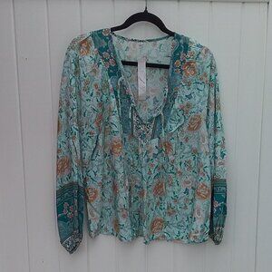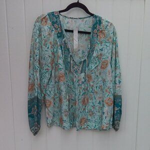 Gaevet Women's Blouse Boho Print Viscose Peasant Med New with Tags