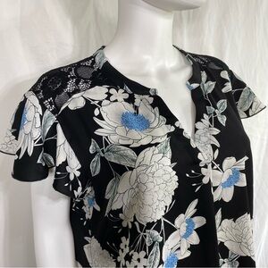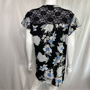 Gaharu Floral Lace Back Notch V-Neck Chiffon Blouse