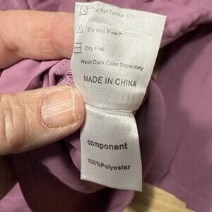 The Gaharu Top is a purple, solid-colored blouse in size 2XL. It features a V-neckline, long sleeves with roll tab accents, and a pullover closure. Made of lightweight polyester, this relaxed and comfortable boxy flowy top is perfect for travel, parties, or casual outings. The blouse is machine washable and appeals to a colorful theme, making it a versatile and stylish addition to any woman's wardrobe.