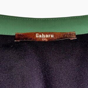 Gaharu Women's Navy/Green Retro Colorblock Faux Zip Pockets Roll Tab Blouse XXL