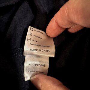 Effortlessly modern and polished, this navy blue Gaharu colorblock blouse delivers sleek, minimalist style with a pop of bold green trim. Crafted in a lightweight, drapey fabric with an oversized fit, it features standout zipper faux front pockets, a flattering split neckline, and roll-tab sleeves for versatile wear.