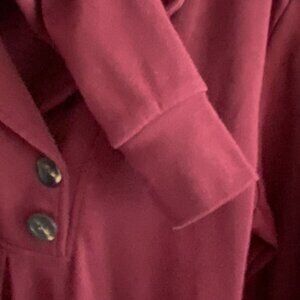 Gaharu Womens Swing Tunic With Notch Collar-Dark Red-Size Large-GUC