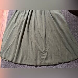 Brand new, never worn Mimosa below knee skirt from Gaia Conceptions. The color is called Spinach, it is a nice neutral olive green shade. This skirt has pockets! The heavy hemp cotton blend fabric is so cozy and drapes beautifully. Has a slight nubby texture. Waist is elastic. I would keep this, but the waist is a bit too snug on me. Sad to see it go! Gaia does not attach tags to their clothing, but this is brand new, never washed or worn.