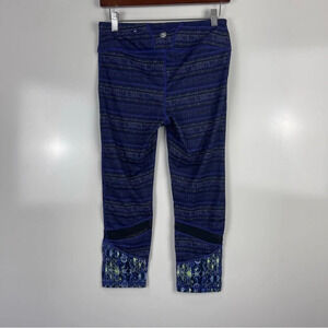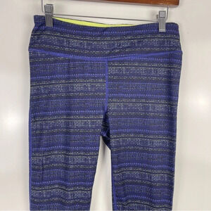 Gaiam Cropped Mid Rise Work Out Leggings Mesh Cut Outs Purple Print Size Medium
