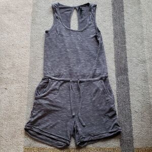 EUC Gaiam Gray Romper. Waist tie, two side pockets. Size small, smoke free home. Please make a reasonable offer.
