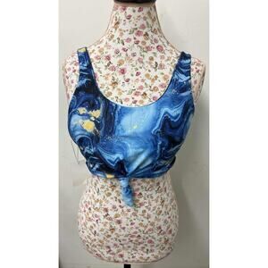 Gaiam Women's Flow Blue Shadow Marble Print Bra Tank Top Yoga Workout m
