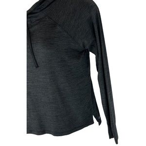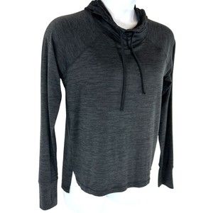 Gaiam Womens M Funnel Neck Shirt Charcoal Black Hoodie Yoga Thumb Holes