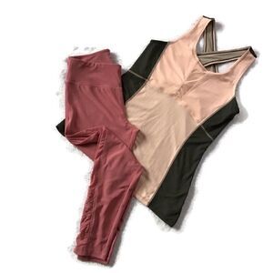 Gaiam Dusty Pink and Gray Cross Back Illusion Builtin Bra Tank Top
