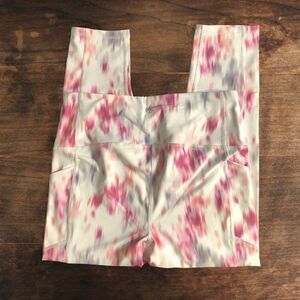 GAIAM Performance Capri. Leggings in a white/pink/grey print. Two pockets on the side. tag size M. NWOT