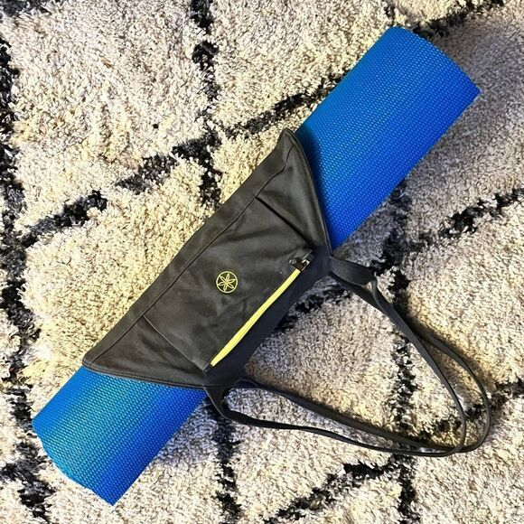 Brand new never used Gaiam yoga mat with yoga mat bag. Other in excellent condition. Bag has double straps, small zip pocket in front and stretch elastic straps for securing mat in bag. NOTE - did some spray painting over the summer and even though I had things covered with plastic, somehow specs of paint got on both items. I’ve done a pretty good job getting it off the mat, but not as good of luck on the other. Can still see some. Priced accordingly